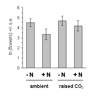 There was no significant effect of either raised CO2 or nitrogen treatments on the number of flowers produced by the Calluna plants (Fig. 7-8).