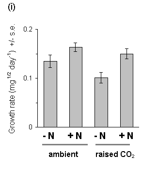 Calluna was equally unresponsive to CO2 enrichment under both low and high-nitrogen treatments, since there were no significant CO2 -nitrogen interaction effects on any plant response. There was, therefore, no evidence in this study that the response of Calluna growth to CO2 enrichment was nutrient-limited (Woodin et al., 1992) (see Section 1.6).