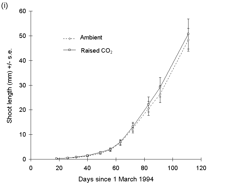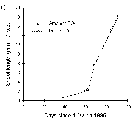 with time, 1995. (i): current year's shoot lengths for all raised-CO2